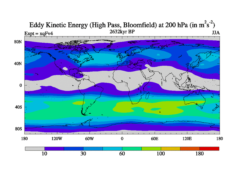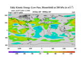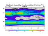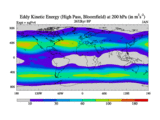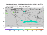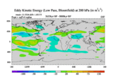 Low Pass Eddy Kinetic Energy at 200 hPa