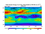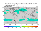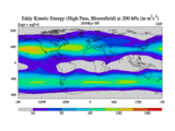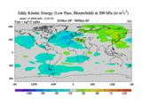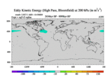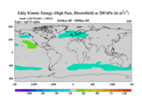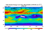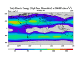 Low Pass Eddy Kinetic Energy at 200 hPa