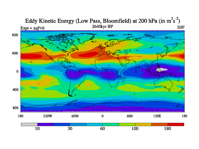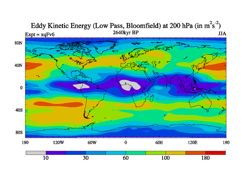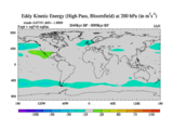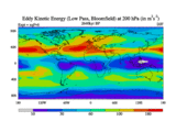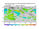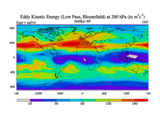 Low Pass Eddy Kinetic Energy at 200 hPa
