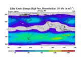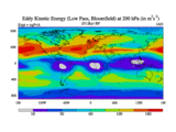 Low Pass Eddy Kinetic Energy at 200 hPa