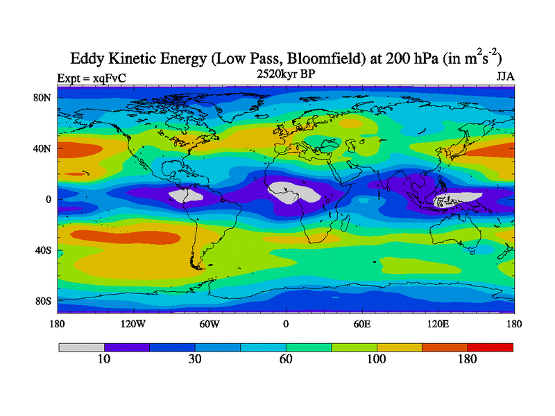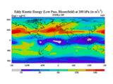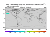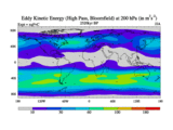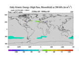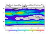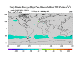 Low Pass Eddy Kinetic Energy at 200 hPa