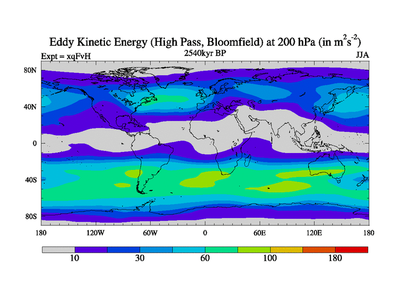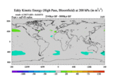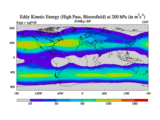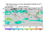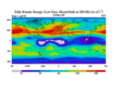 Low Pass Eddy Kinetic Energy at 200 hPa