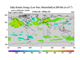 Low Pass Eddy Kinetic Energy at 200 hPa