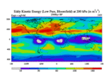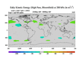 Low Pass Eddy Kinetic Energy at 200 hPa