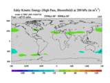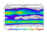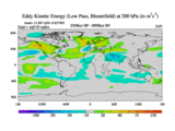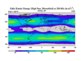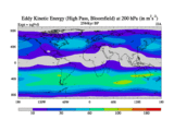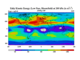Low Pass Eddy Kinetic Energy at 200 hPa