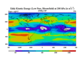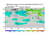 Low Pass Eddy Kinetic Energy at 200 hPa