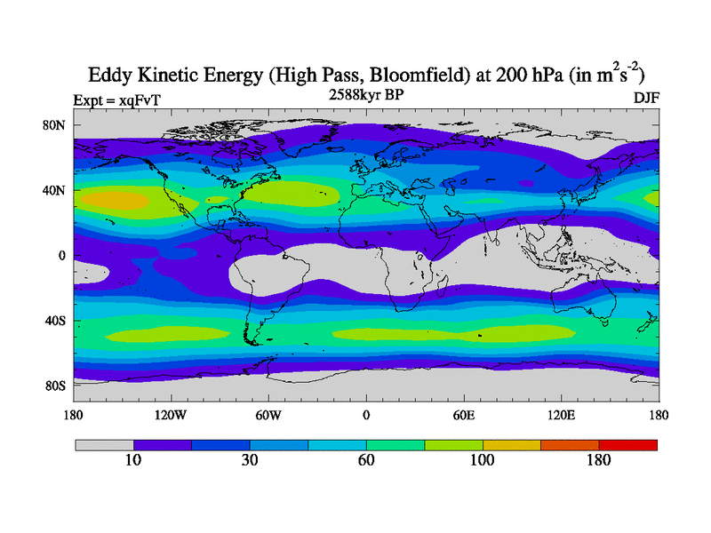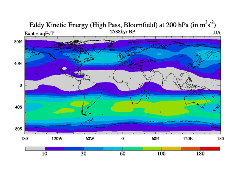 High Pass Eddy Kinetic Energy at 200 hPa