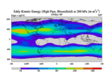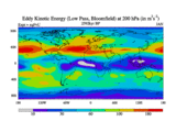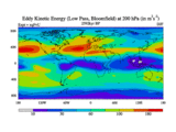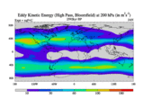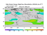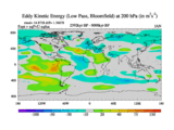 Low Pass Eddy Kinetic Energy at 200 hPa
