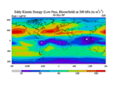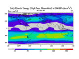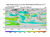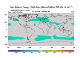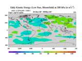 Low Pass Eddy Kinetic Energy at 200 hPa