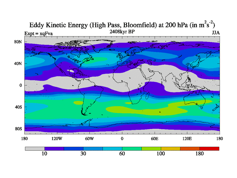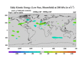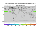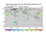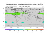 Low Pass Eddy Kinetic Energy at 200 hPa