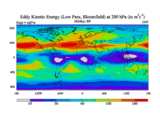 Low Pass Eddy Kinetic Energy at 200 hPa