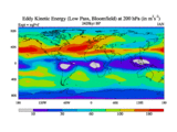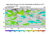 Low Pass Eddy Kinetic Energy at 200 hPa