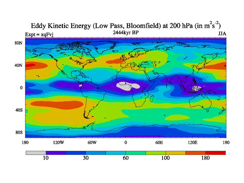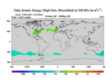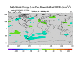 Low Pass Eddy Kinetic Energy at 200 hPa