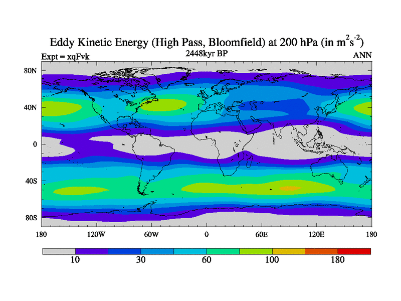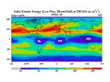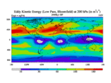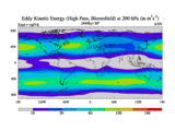 Low Pass Eddy Kinetic Energy at 200 hPa