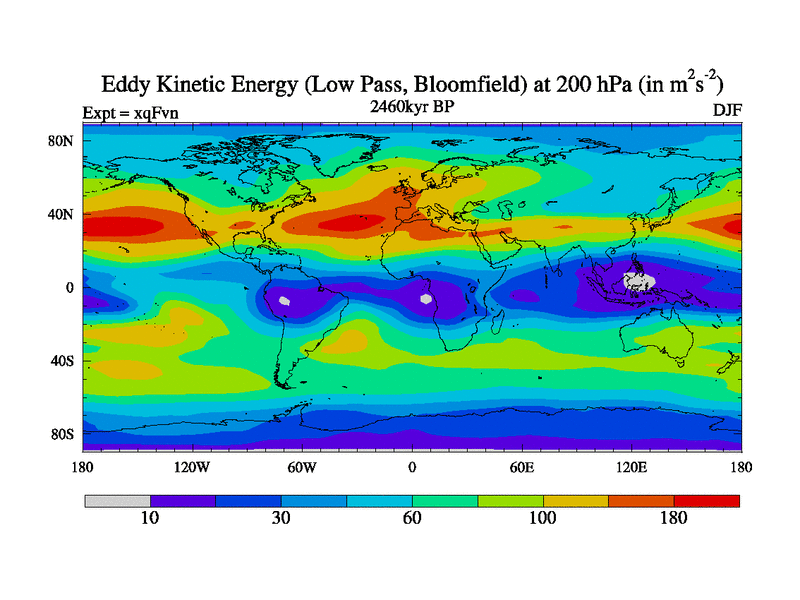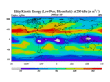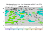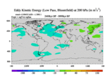 Low Pass Eddy Kinetic Energy at 200 hPa