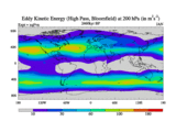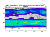 High Pass Eddy Kinetic Energy at 200 hPa