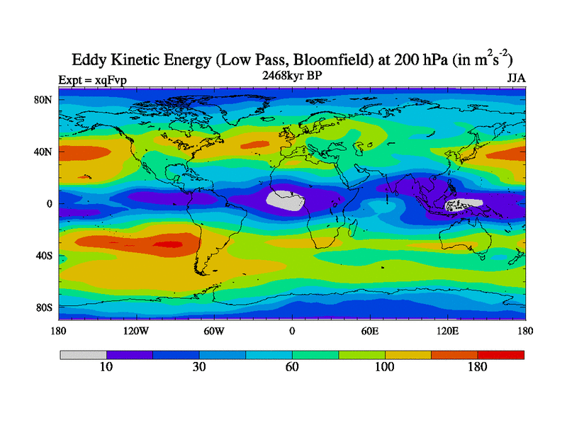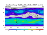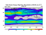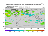 Low Pass Eddy Kinetic Energy at 200 hPa