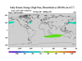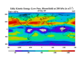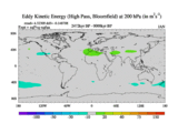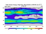 Low Pass Eddy Kinetic Energy at 200 hPa