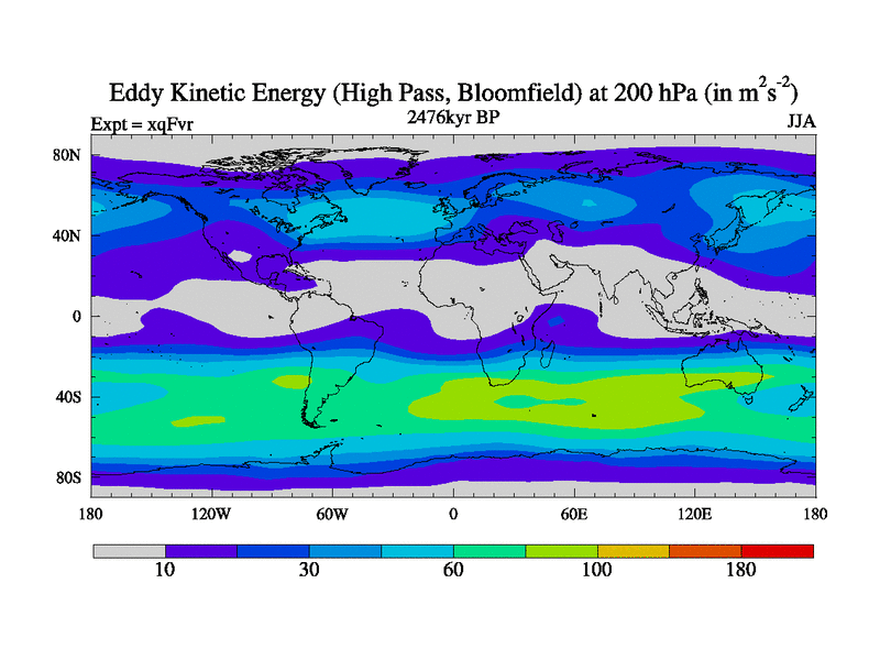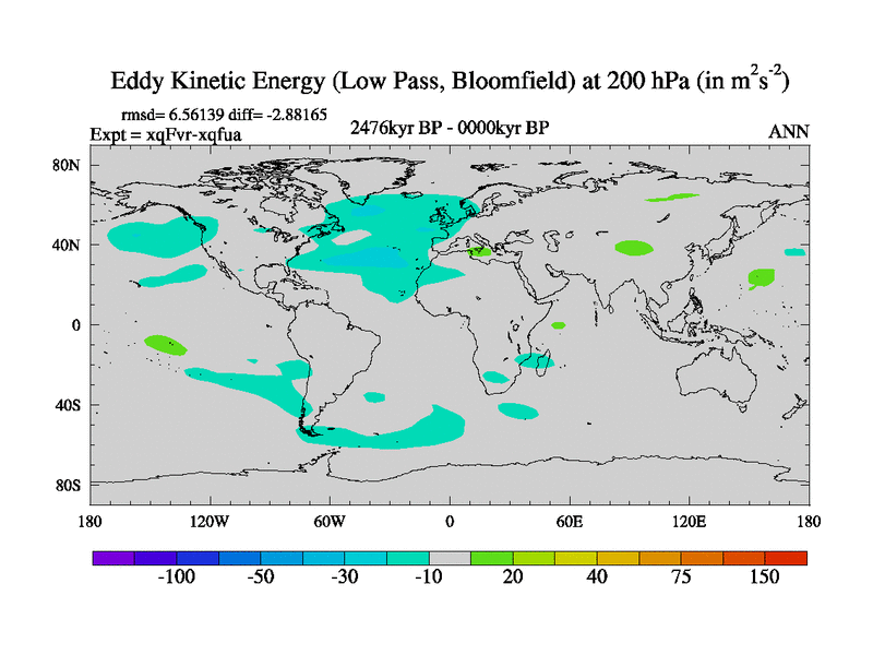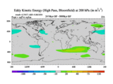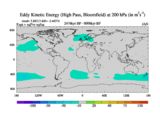 Low Pass Eddy Kinetic Energy at 200 hPa