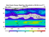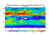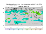 Low Pass Eddy Kinetic Energy at 200 hPa