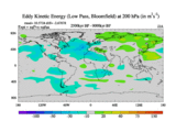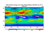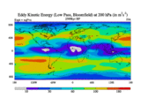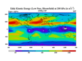 Low Pass Eddy Kinetic Energy at 200 hPa