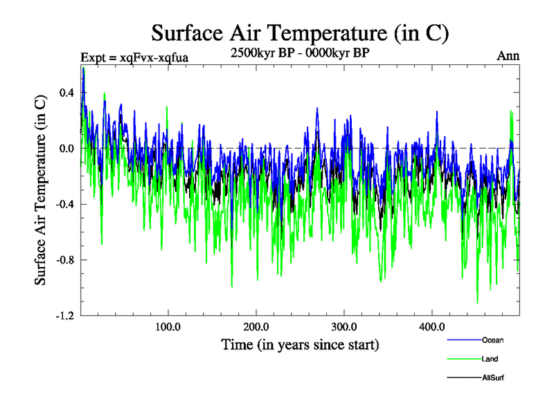 This is the 2500kyr simulation for a new set of BBC long runs. This is using the new convection/soil schemes, and has bug fixes for checkerboard patterns, and GW drag. Also includes eccentricity bugfix. This run includes orbit and icesheet but no GHGs variations.