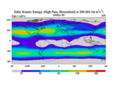 High Pass Eddy Kinetic Energy at 200 hPa