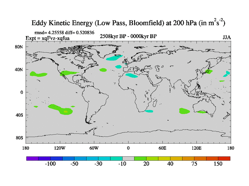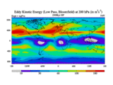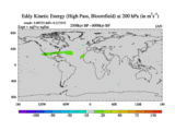 Low Pass Eddy Kinetic Energy at 200 hPa