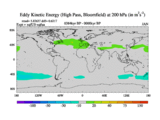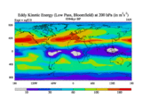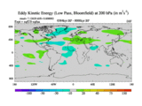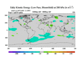Low Pass Eddy Kinetic Energy at 200 hPa