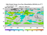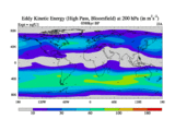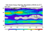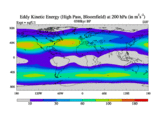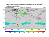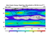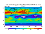Low Pass Eddy Kinetic Energy at 200 hPa