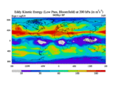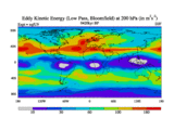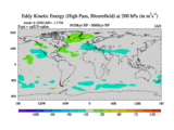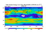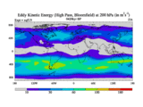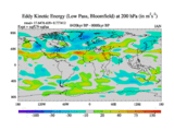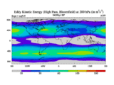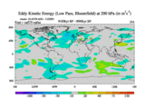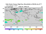 Low Pass Eddy Kinetic Energy at 200 hPa