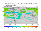 Low Pass Eddy Kinetic Energy at 200 hPa