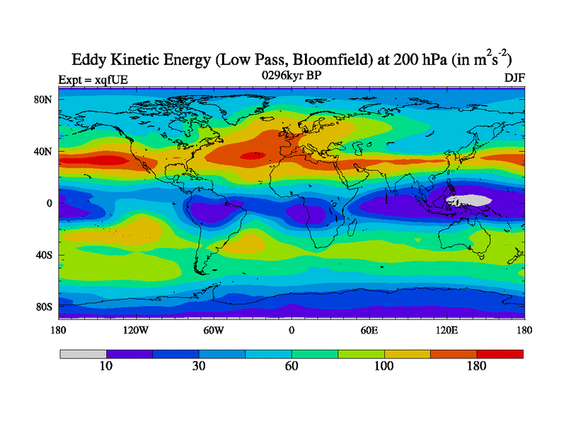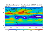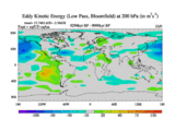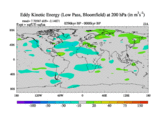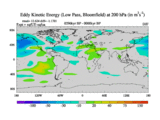 Low Pass Eddy Kinetic Energy at 200 hPa