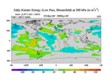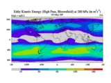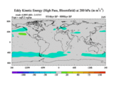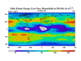 Low Pass Eddy Kinetic Energy at 200 hPa