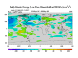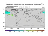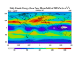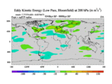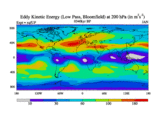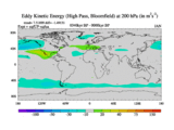 Low Pass Eddy Kinetic Energy at 200 hPa