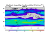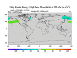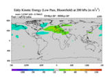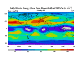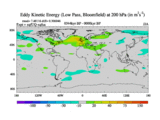 Low Pass Eddy Kinetic Energy at 200 hPa
