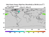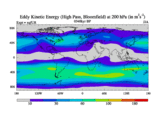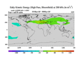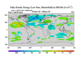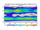 Low Pass Eddy Kinetic Energy at 200 hPa