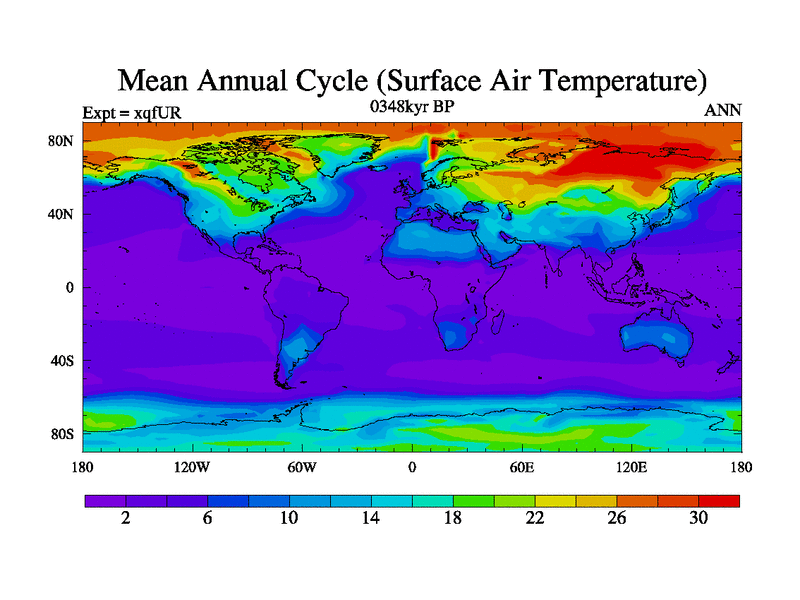 This is the 0348kyr simulation for a new set of BBC long runs. This is using the new convection/soil schemes, and has bug fixes for checkerboard patterns, and GW drag. Also includes eccentricity bugfix. This run includes orbit and icesheet but no GHGs variations.