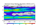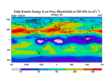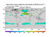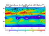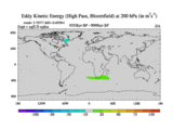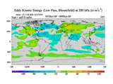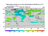 Low Pass Eddy Kinetic Energy at 200 hPa