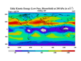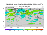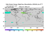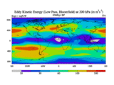 Low Pass Eddy Kinetic Energy at 200 hPa