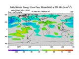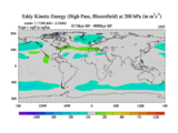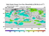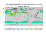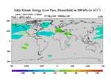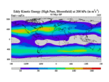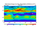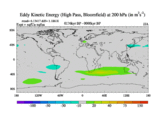 Low Pass Eddy Kinetic Energy at 200 hPa