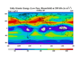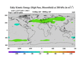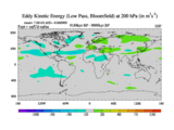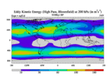 Low Pass Eddy Kinetic Energy at 200 hPa