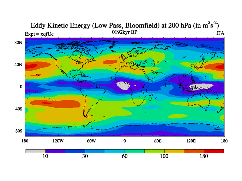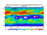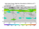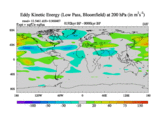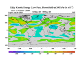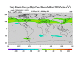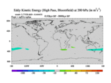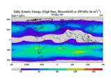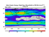 Low Pass Eddy Kinetic Energy at 200 hPa