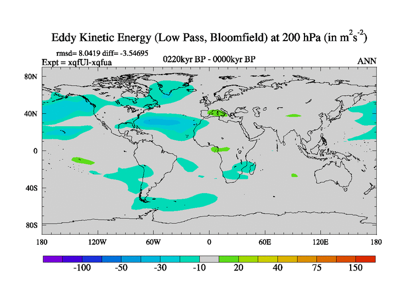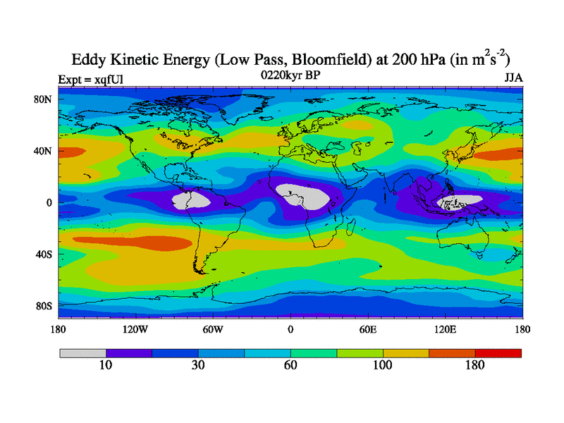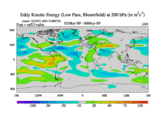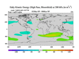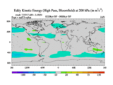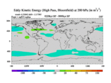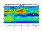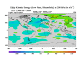 Low Pass Eddy Kinetic Energy at 200 hPa