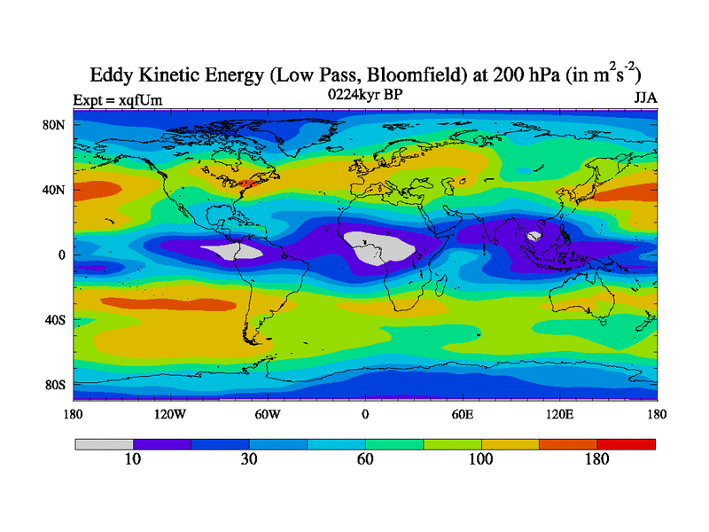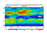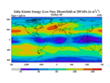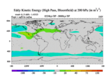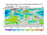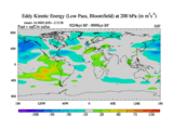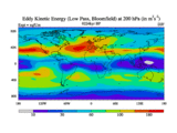 Low Pass Eddy Kinetic Energy at 200 hPa