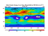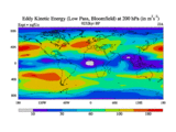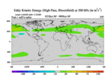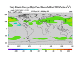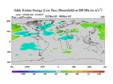Low Pass Eddy Kinetic Energy at 200 hPa