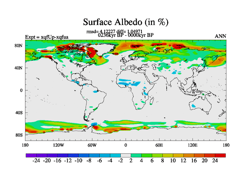 This is the 0236kyr simulation for a new set of BBC long runs. This is using the new convection/soil schemes, and has bug fixes for checkerboard patterns, and GW drag. Also includes eccentricity bugfix. This run includes orbit and icesheet but no GHGs variations.