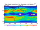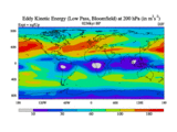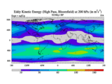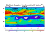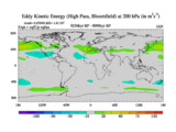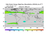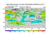 Low Pass Eddy Kinetic Energy at 200 hPa