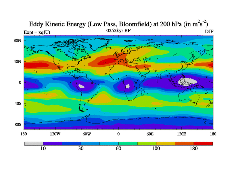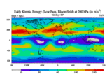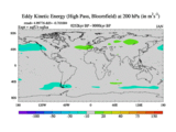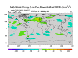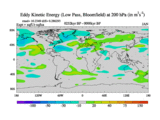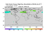 Low Pass Eddy Kinetic Energy at 200 hPa