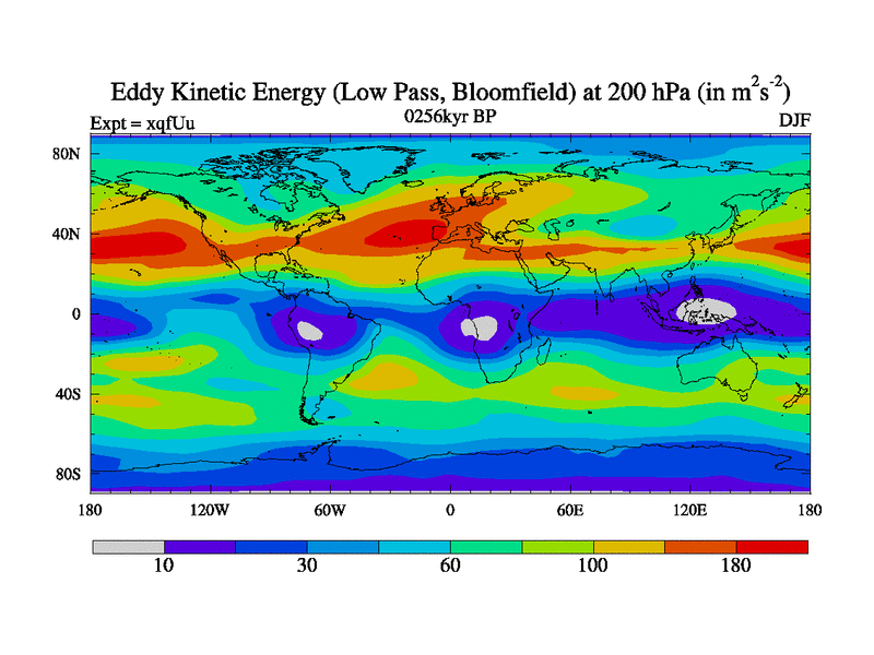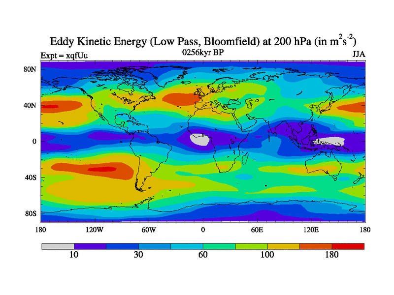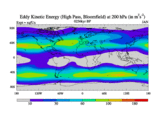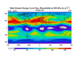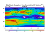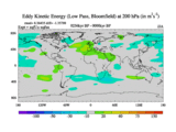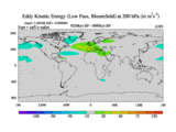 Low Pass Eddy Kinetic Energy at 200 hPa